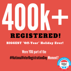 This year’s holiday beat all expectations with over 400,000 registrations during the holiday that more than TRIPLED our record for an “off-year” election. We only reached this goal thanks to over 4,000 community partners who held events in nearly every state in the country! Help spread the news across your social media channels!